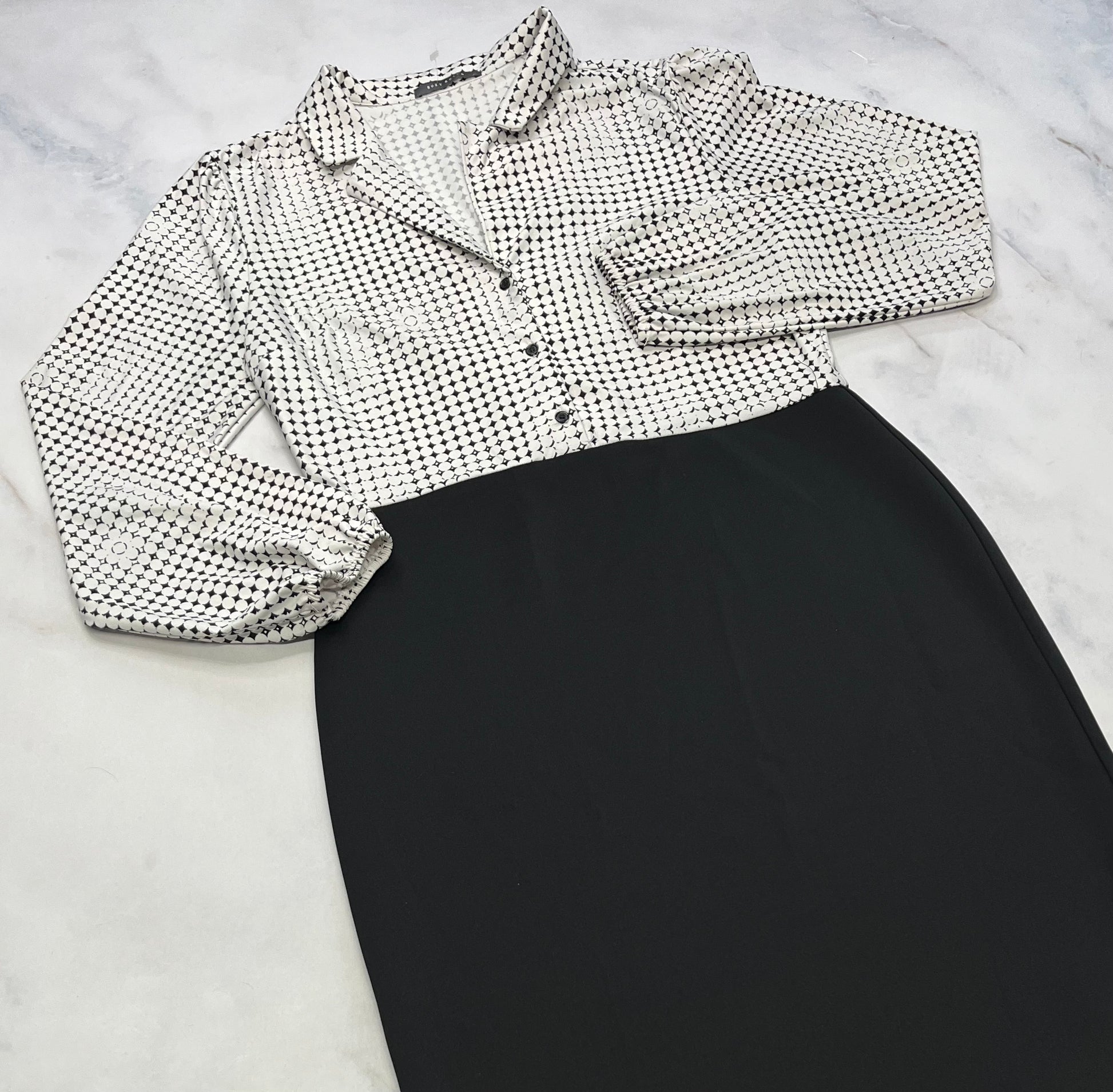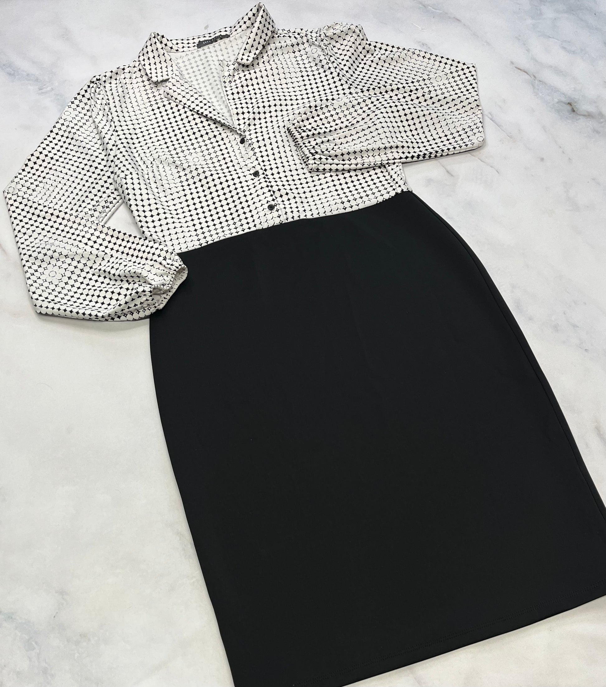 Belle robe Suzie : Tissu stretch de partout ( manche ballon ). Illusion 2 pièces . Comme neuve ! Fait M/ femme .