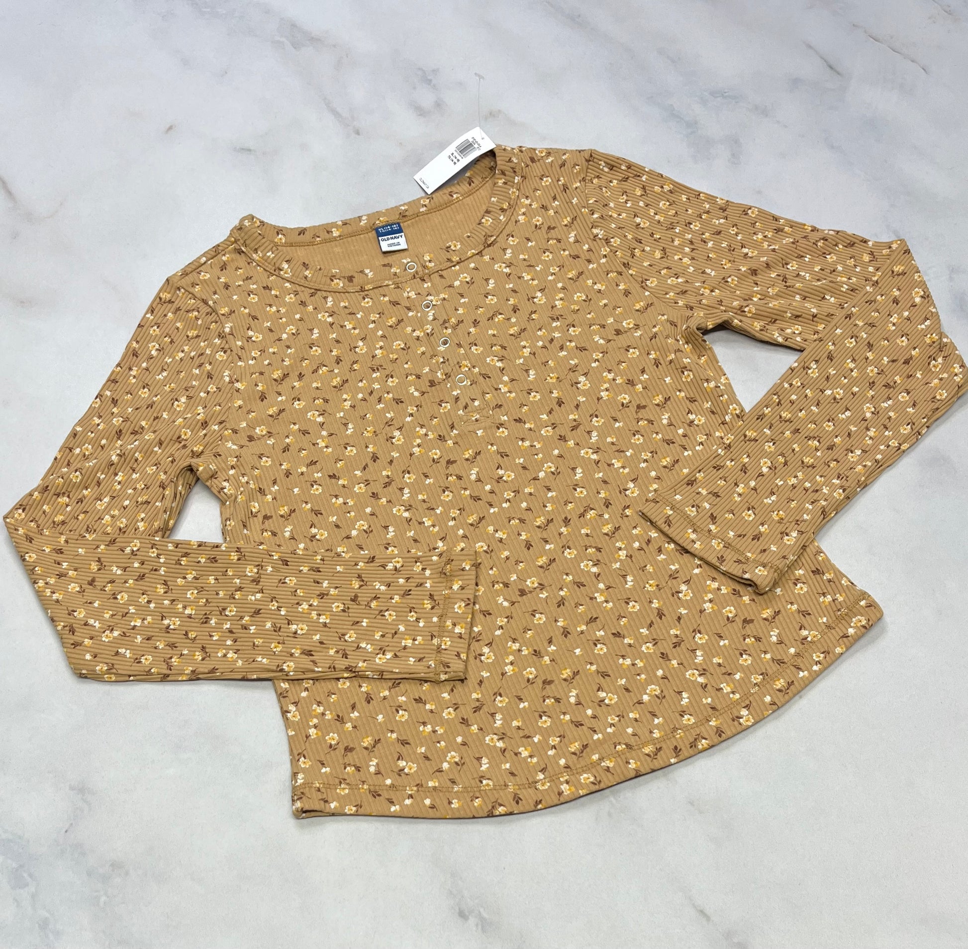 Manche longue : Rib/ texturé moulant fleurit neuf ! Fait 6-8 et 12-13 ans .