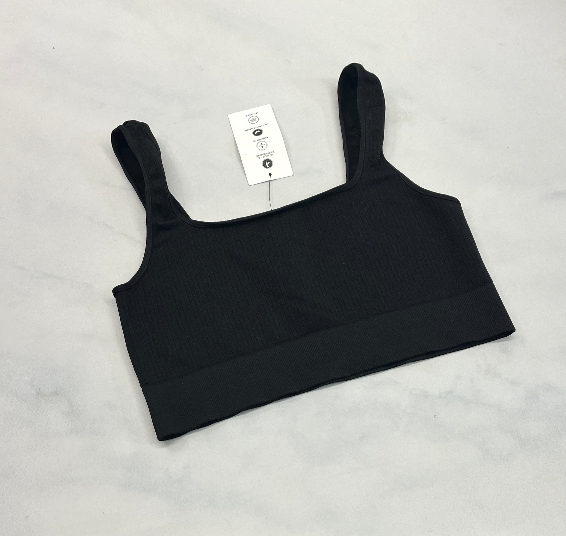 Top noir : tissu sport stretch ++ texturé neuf ! (M-L femme ). ( pas padé) .